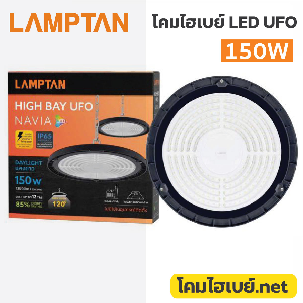 โคมไฟไฮเบย์ แอลอีดี แลมป์ตั้น LAMPTAN -LED HIGH BAY UFO -NAVIA-150W แสงขาว Daylight 6500K